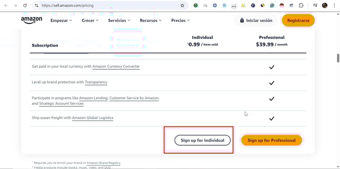 ¿Cómo me registro para una cuenta de vendedor INDIVIDUAL para no tener que pagar $39.99 USD al mes?