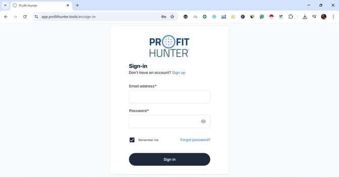 Introduce tu correo electrónico y contraseña con los que te registraste en Profit Hunter.