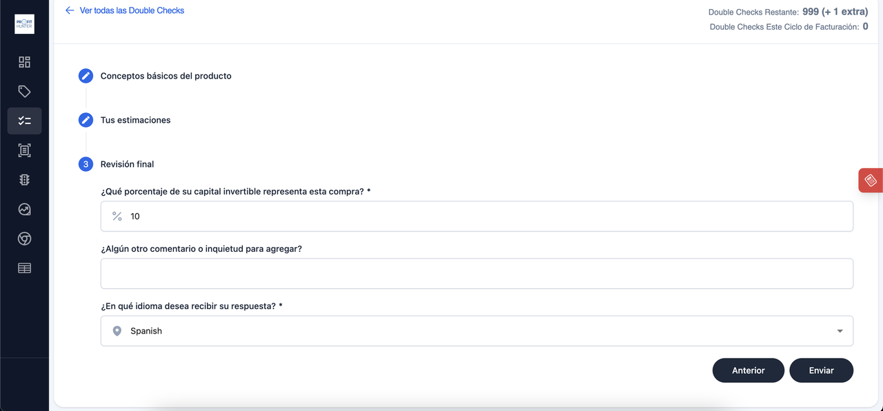 Si deseas recibir una opinión experta y un análisis detallado de tus productos, aquí te mostramos cómo hacerlo con Profit Hunter Double Check.
